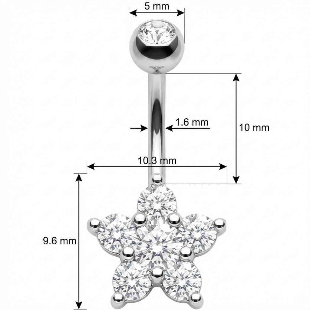 Ready to glow? This dazzling flower design is the ultimate summer essential for your navel. Crafted from durable 316L Surgical Steel, it brings the perfect amount of sparkle to your beach look. Sexy, shiny, and an absolute eye-catcher – show off your midriff in style with this radiant floral beauty!