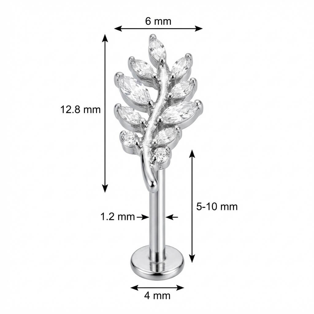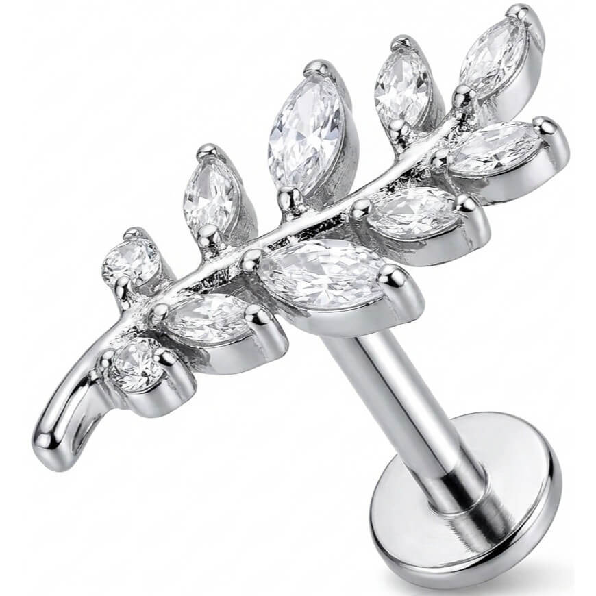 Titanium Labret Curved Crystal Fern Leaf Branch