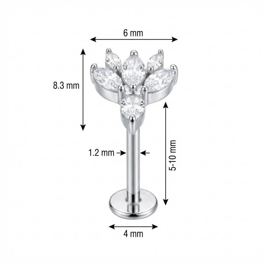 Titane Labret Fleur Lotus Cristaux Marquise Filetage Interne