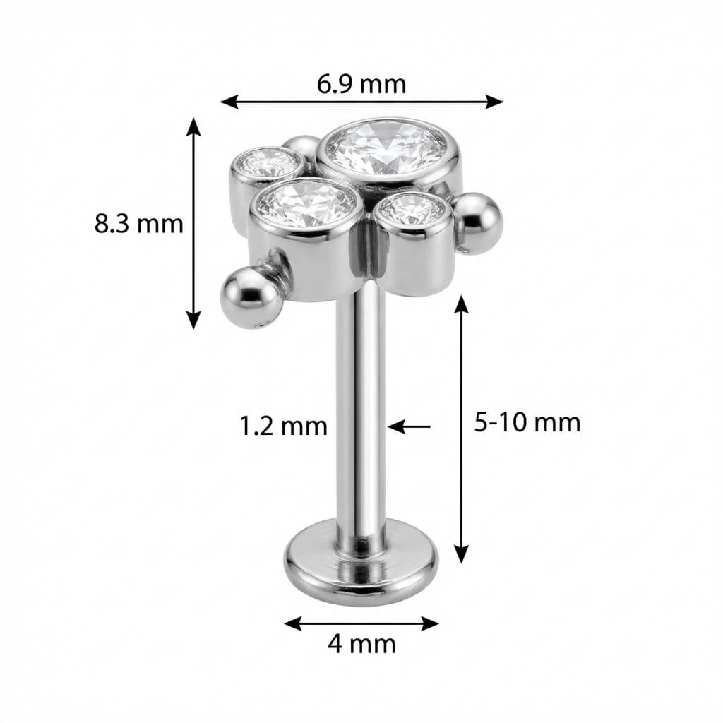 Titanium Labret Beaded Crystal Trio Cluster