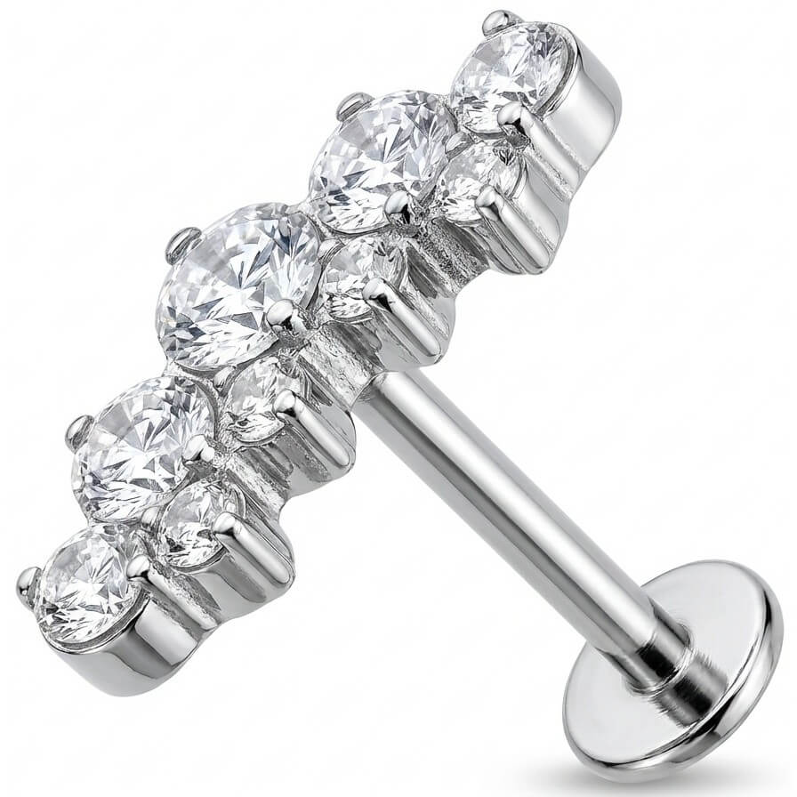 Level up your ear game with this stunning curved design that perfectly follows the natural line of your anatomy. Crafted from high-quality Titanium, this piece features a graduated row of sparkling crystals that catch the light from every angle. It is the ultimate addition to your helix or conch stack, offering a comfortable fit and hypoallergenic properties. Add some serious sparkle to your daily look with this durable and trendy essential.