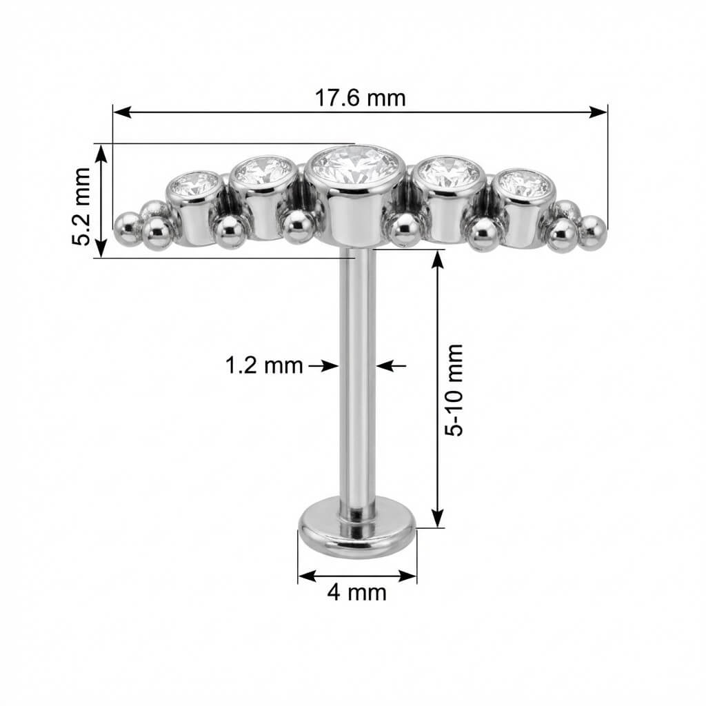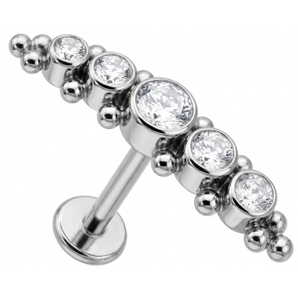 Ready to upgrade your ear game? This stunning curved design features five graduated crystals that sparkle intensely, framed by delicate metal beads for extra texture. The arc shape hugs the natural contours of your ear, making it a perfect match for a Helix or Conch placement. Crafted from high-quality Titanium, this piece is not only stylish but also skin-friendly and durable. A total must-have for your curated stack!