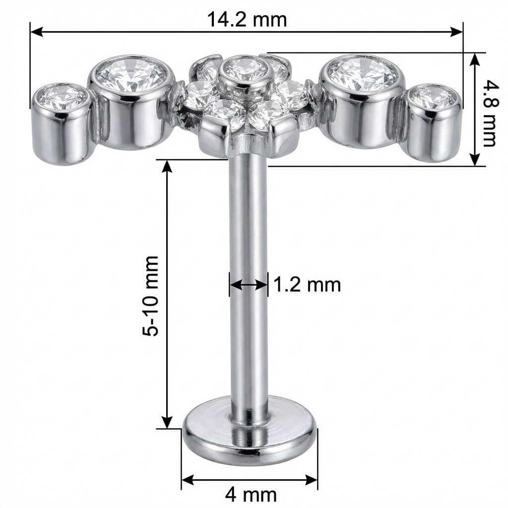 Level up your ear curator game with this dazzling curved cluster. Featuring a sparkling floral center flanked by round bezel-set crystals, this piece is designed to follow the natural curve of your ear. Crafted from premium Titanium, it offers the perfect blend of style and skin-friendly comfort. A stunning choice for helix or conch placements.