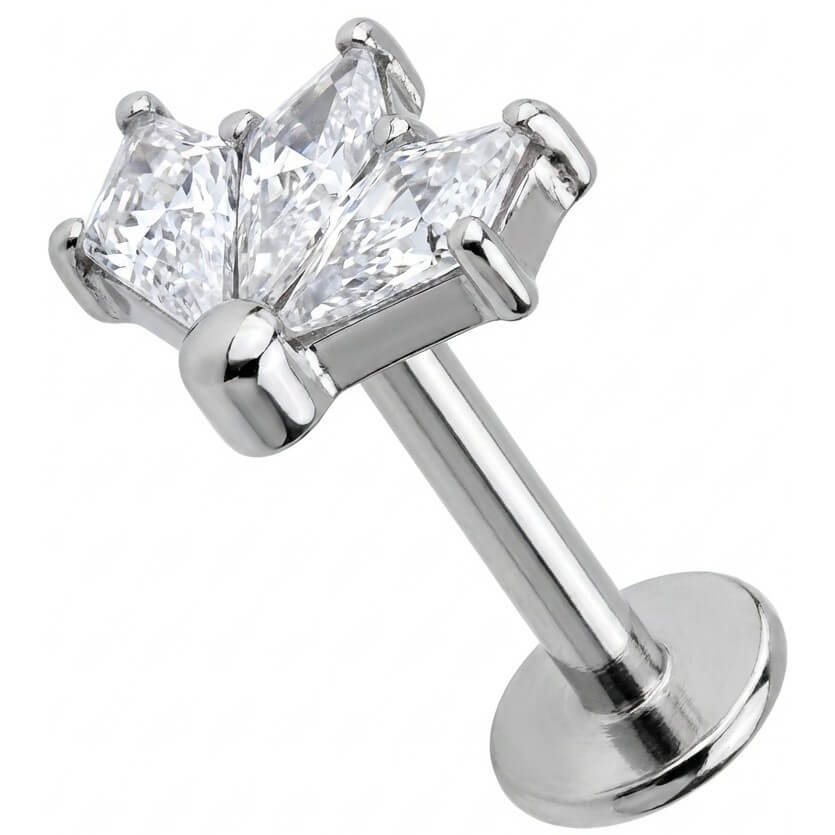 Upgrade your ear game with this stunning fan design. Featuring three sparkling crystals arranged in a delicate cluster, it creates the perfect light-catching accent for your helix, conch, or tragus. Made from high-quality Titanium, this piece is hypoallergenic and durable, making it ideal for everyday wear. A radiant addition to any curated ear stack.