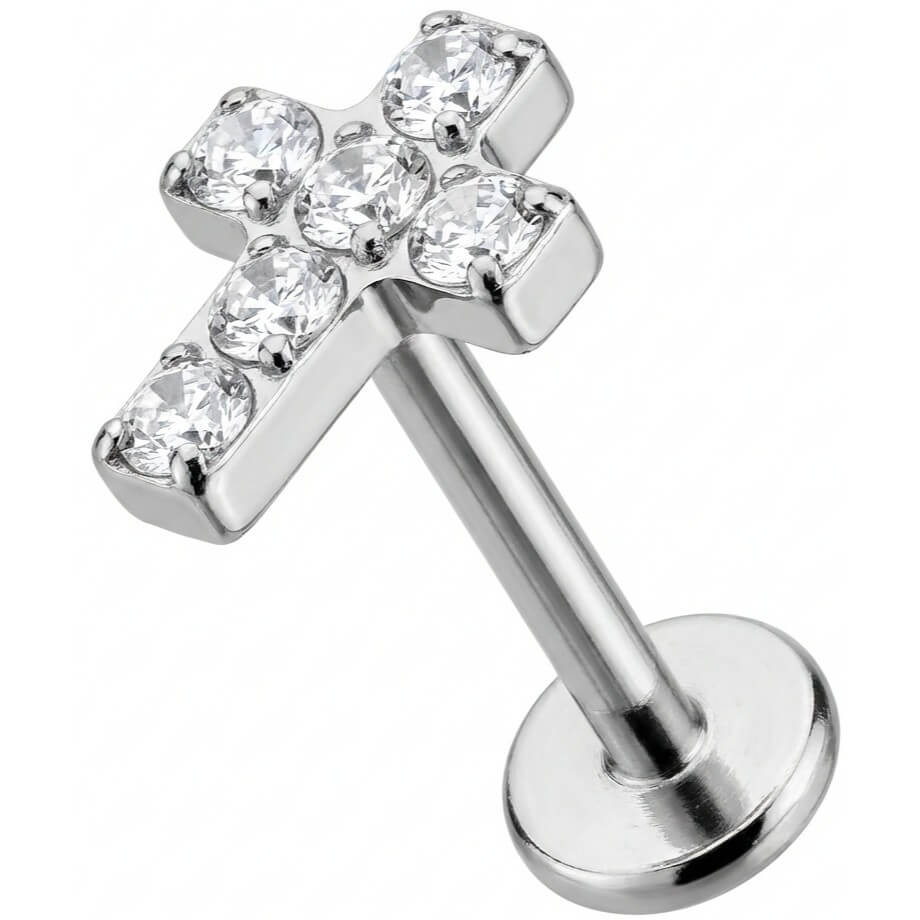 Add some divine sparkle to your ear stack. This stunning cross design features six dazzling clear stones that catch the light perfectly. Made from high-quality Titanium, it is completely hypoallergenic and durable, making it the perfect choice for everyday wear. Whether for your helix, lobe, or tragus, this piece adds a timeless glam twist to your look.