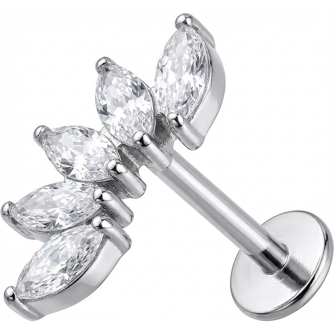 Ready to level up your ear stack? This stunning piece features five dazzling marquise-cut crystals arranged in a delicate fan curve that perfectly hugs the contours of your ear. It is the ultimate statement for your helix or conch placements. Crafted from premium Titanium, this body jewelry is hypoallergenic and safe for everyday wear. Add some serious sparkle to your collection!