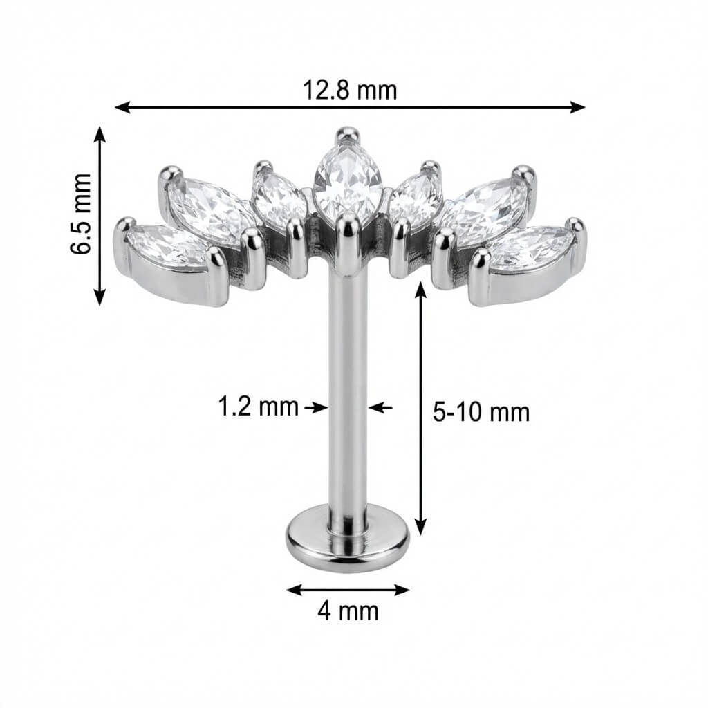 Elevate your ear game with this stunning curved cluster. Featuring seven sparkling marquise-cut stones arranged in a delicate vine shape, this design follows the natural curve of your ear perfectly. Ideal for helix or conch placements, it brings just the right amount of glamour to your daily look. Made from high-quality Titanium, this piece is skin-friendly, durable, and ready to make your ear stack shine.