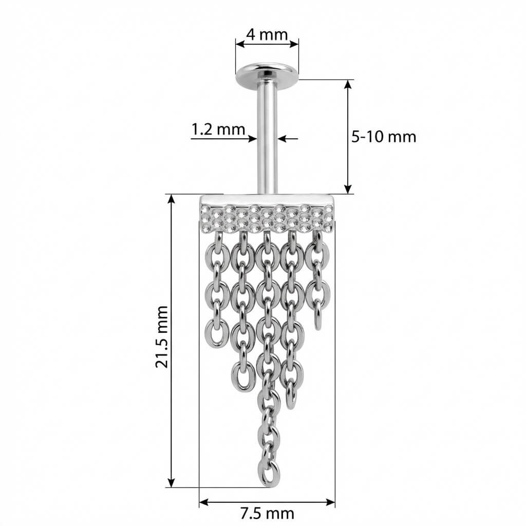 Titanium Labret Textured Bar With Cascading Chains