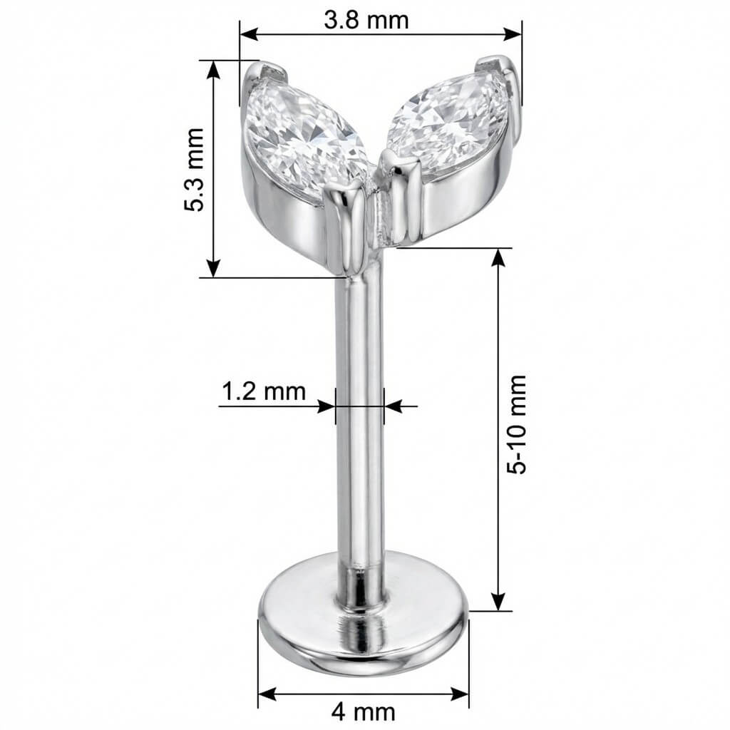 Ready to glow? This stunning design features two marquise-cut crystals arranged like delicate leaves, perfect for adding a nature-inspired touch to your ear stack. Crafted from high-quality Titanium, it is hypoallergenic and super comfortable for all-day wear. Whether for your helix or lobe, this sparkle is a must-have upgrade.