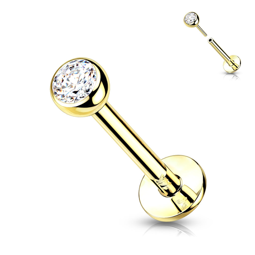 This silver or golden labret is the perfect accessory to add a touch of elegance to your look. With its exquisite zirconia stone, this piercing is sure to catch everyone's attention.