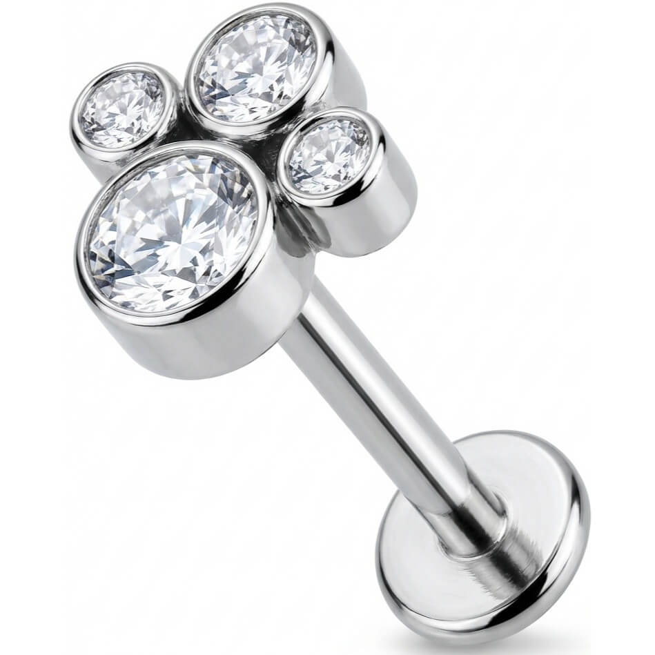 Unleash your inner animal lover with this adorable design! This super cute paw print features four sparkling clear crystals that catch the light perfectly. Crafted from premium Titanium, it is hypoallergenic and durable—perfect for your everyday ear stack. Whether for a helix, lobe, or tragus, this little paw adds a playful and trendy touch to your look.