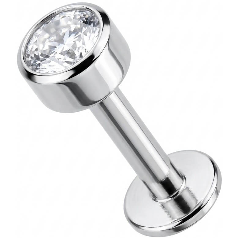Titanium Labret Round Bezel Set Clear Crystal