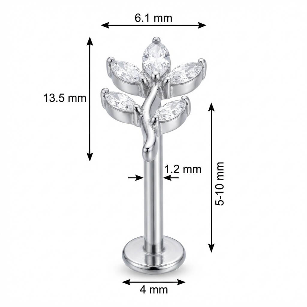 Titanium Labret Curved Marquise Leaf Branch